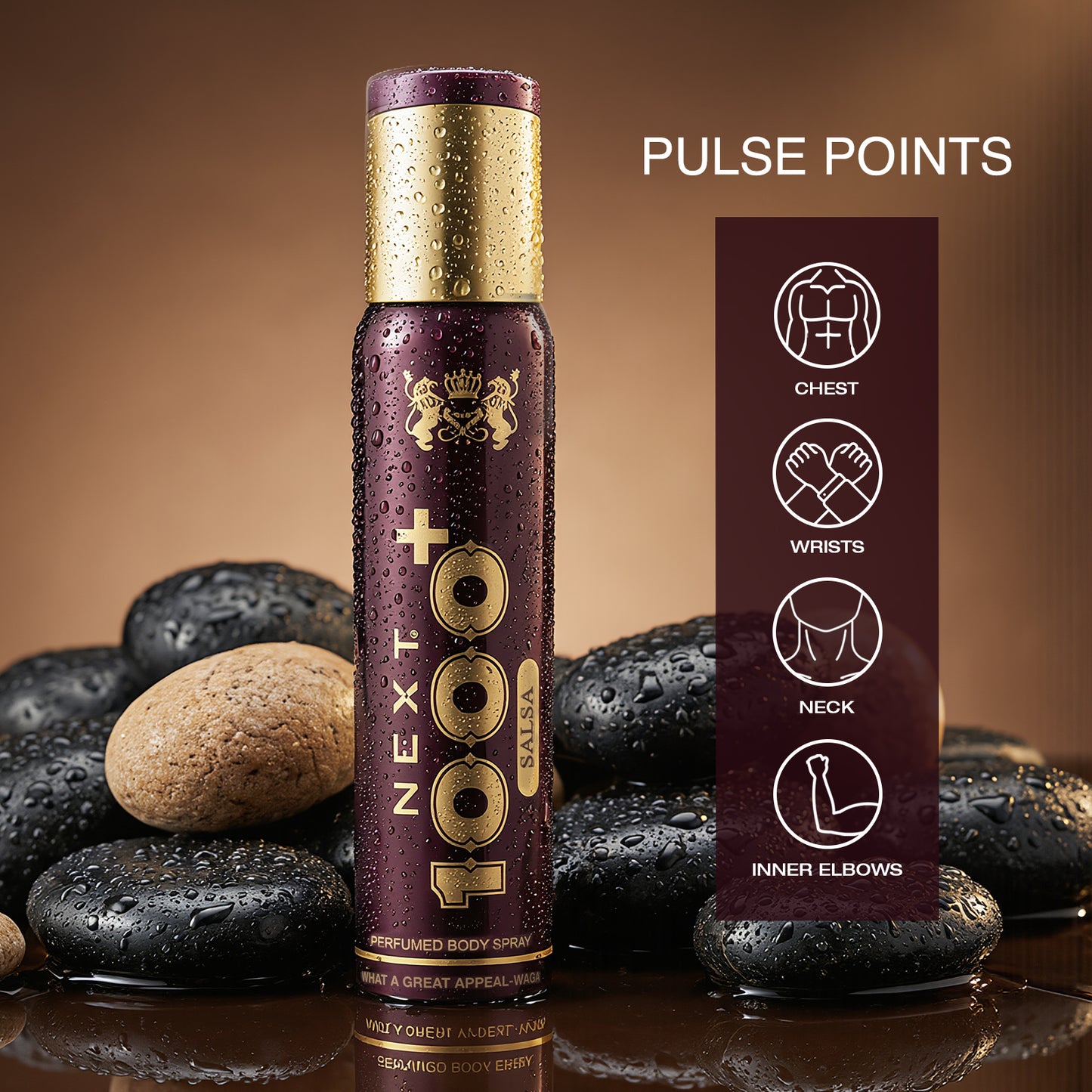 NEXT-1000+ Salsa No Gas Deo is made for people who like a bold, spicy and energetic fragrance that lasts all day. It opens with a sharp mix of lemon, cinnamon, cumin, pink pepper and lavender, giving you a fresh yet warm kick right from the first spray. As it settles, the scent turns richer with plum, nutmeg and animalic notes, adding depth and a strong masculine feel. It finally ends with smooth musk, tonka, vanilla and ambery notes, giving a long-lasting finish that stays on your skin for hours.